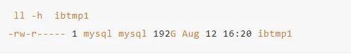 -rw-r----- 1 mysql mysql 192G Aug 12 16:20 ibtmp1
