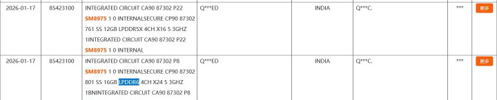 2026年3月底,小米15 Ultra真机拆解图流出,主板上明清晰白印着SM8975,摆布焊着四颗LPDDR6颗粒,96bit位宽,标称10.7Gbps。