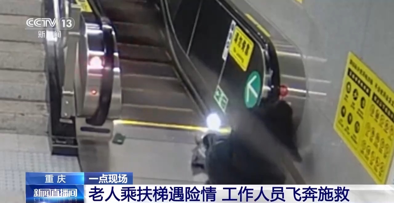 近日(9日),在重庆地铁9号线五里店站内,一位七旬老东说念主搭乘扶梯时躯壳失衡,眼看就要摔下扶梯,一位站务安全员发现后立即向前配合。