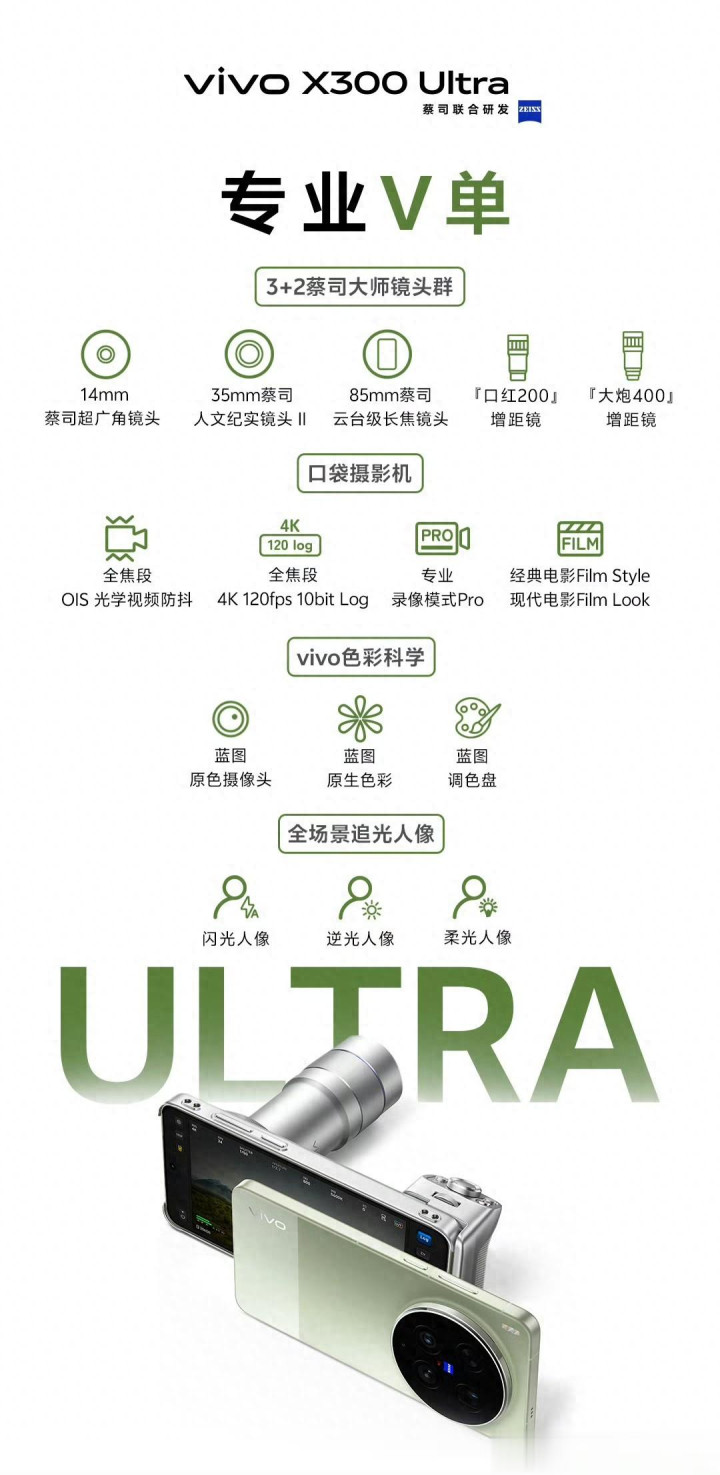 vivo X300系列发布会今晚(3月30日)19:00在丽江举行,两款新机定位很专门念念:X300 Ultra叫“专科V单”,X300s叫“超能小V单”,平直把手机当相机作念。