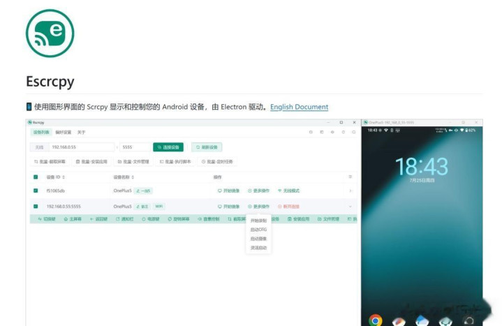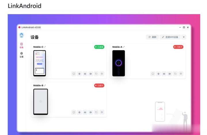 对比过几个:scrcpy大喊行,合适极客;QtScrcpy界面花,但一堆开关看得眼晕;Escrcpy功能全,可界面像2012年的软件。LinkAndroid的UI是Vue作念的,动效顺,按钮大,字体明晰,点错了能坐窝猬缩。它没加键盘宏,也没作念跨剪贴板,但把我最常干的几件事:看屏、截图、录教程、传文献、装包,齐作念得没卡点。