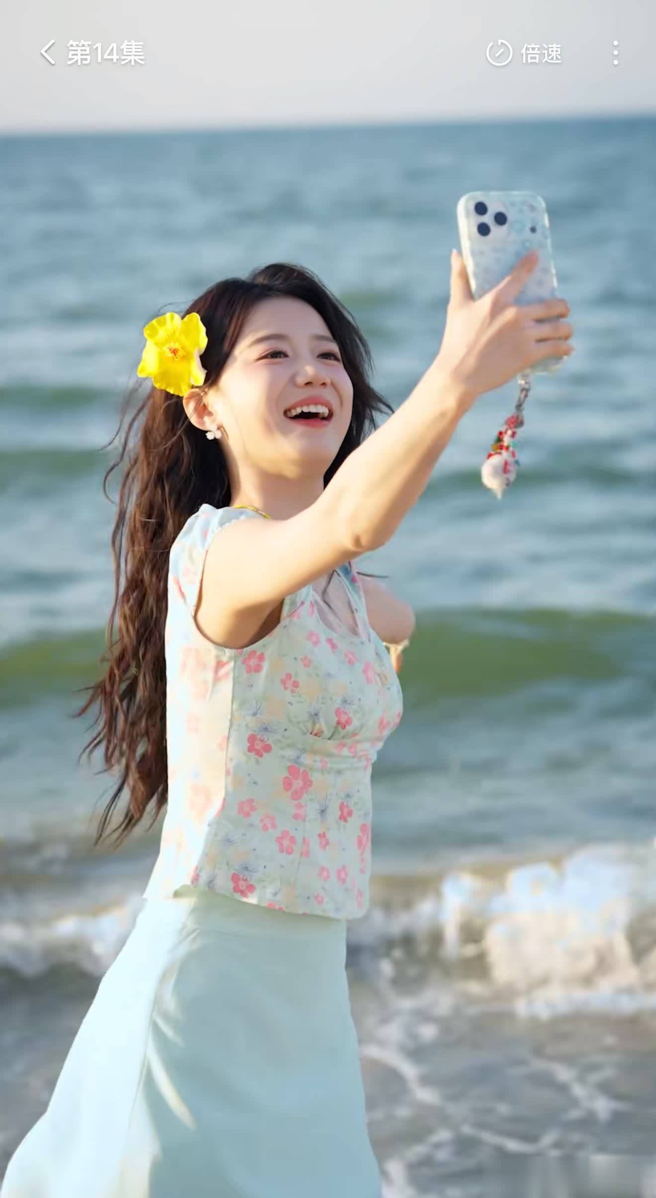 女主梁雯晶的造型,鬈流配碎花上衣和短裙,领路洋气,让东谈主看完就念念去旅行。