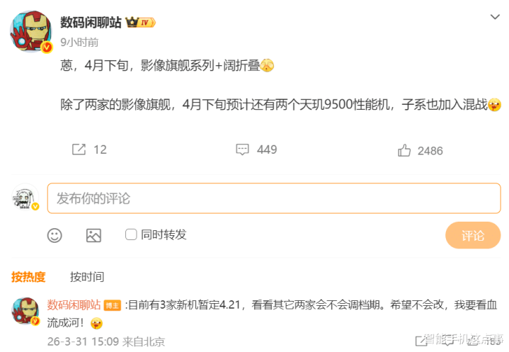 总之,新机的发布时辰能够率是4月21日,如若三家皆不调档期,那天晚上手机圈的热度会径直拉满,抵蚀本者来说,这反而是功德!
